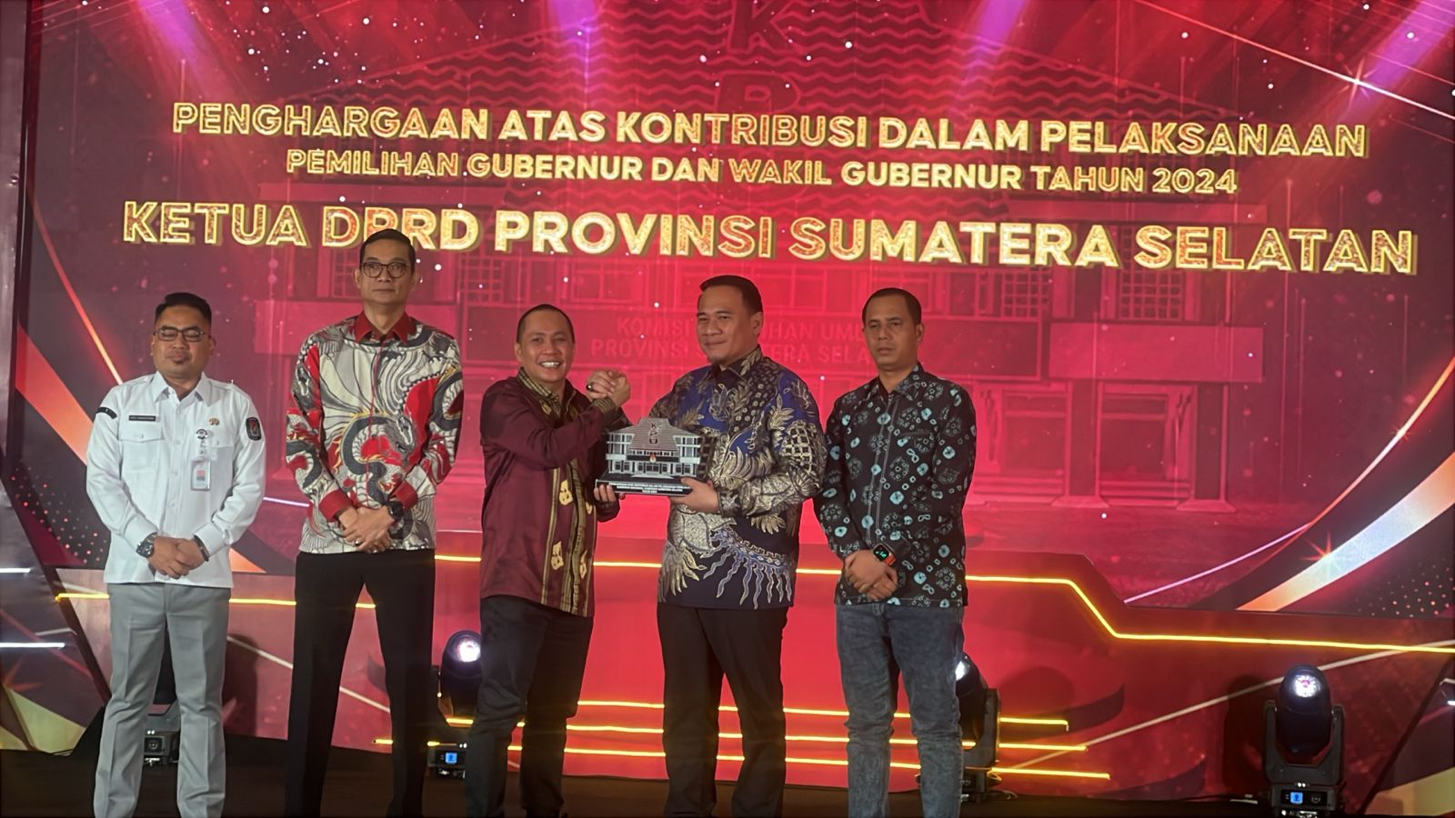Komisi Pemilihan Umum (KPU) Provinsi Sumatera Selatan menggelar acara malam anugerah sebagai bentuk apresiasi terhadap Forum Koordinasi Pimpinan Daerah (Forkopimda), Badan Pengawas Pemilu (Bawaslu), mitra kerja, serta stakeholder terkait yang telah berkontribusi dalam penyelenggaraan Pemilihan Gubernur dan Wakil Gubernur Sumatera Selatan tahun 2024. Acara penghargaan ini berlangsung di Hotel Santika Premier Palembang pada Senin malam (20/1/2025).